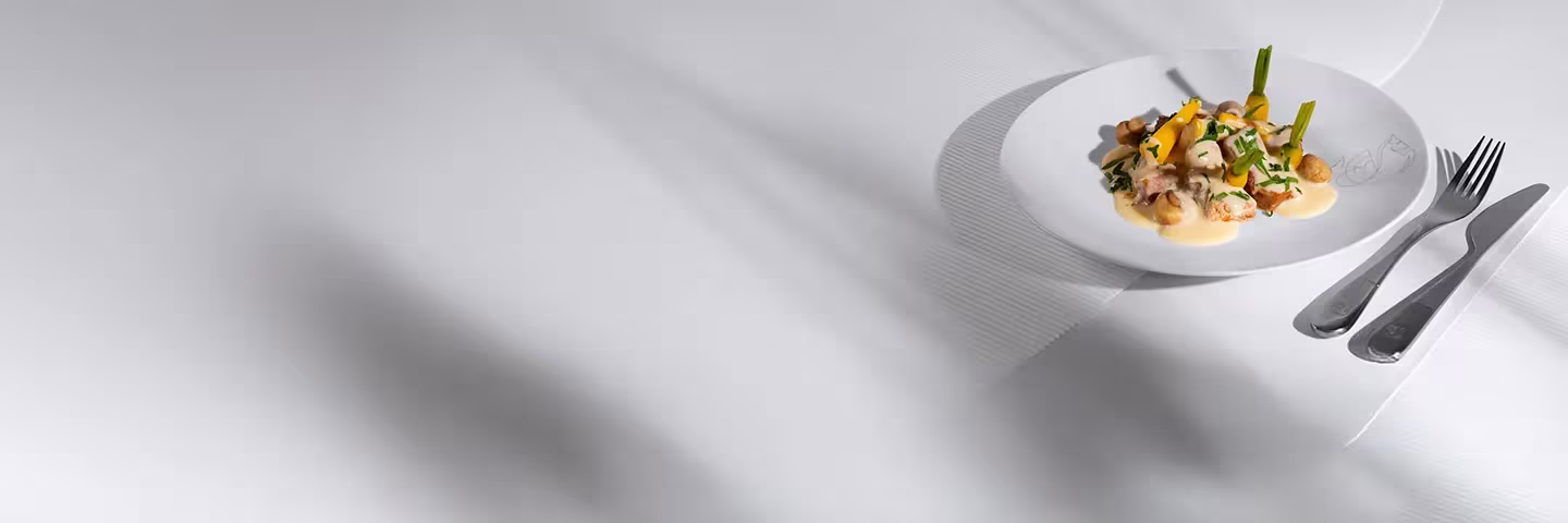 Air France collaborates with the finest French chefs to craft the menus, select the highest-quality ingredients, and create the recipes that define the La Première dining experience.
